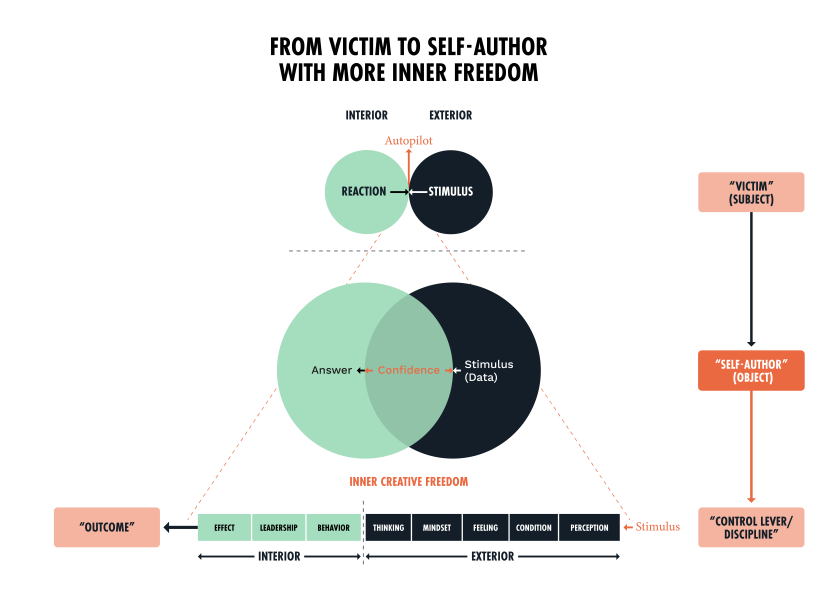 The word “self-authorship” comes essentially from Harvard psychologist Robert Kegan, who has focused on adult self-development for over 40 years (Vertical- Adult Development). By this he means the attitude: I take responsibility for myself, I rewrite my own story every day. I am the author of my life. This is a natural (but very advanced) leap of consciousness in human development and maturity, at the threshold of which many leaders and their teams find themselves.